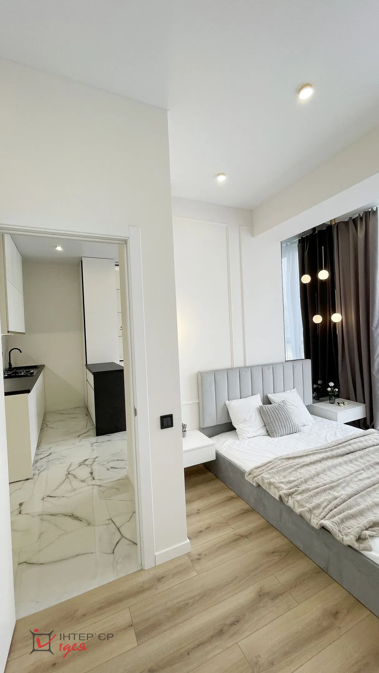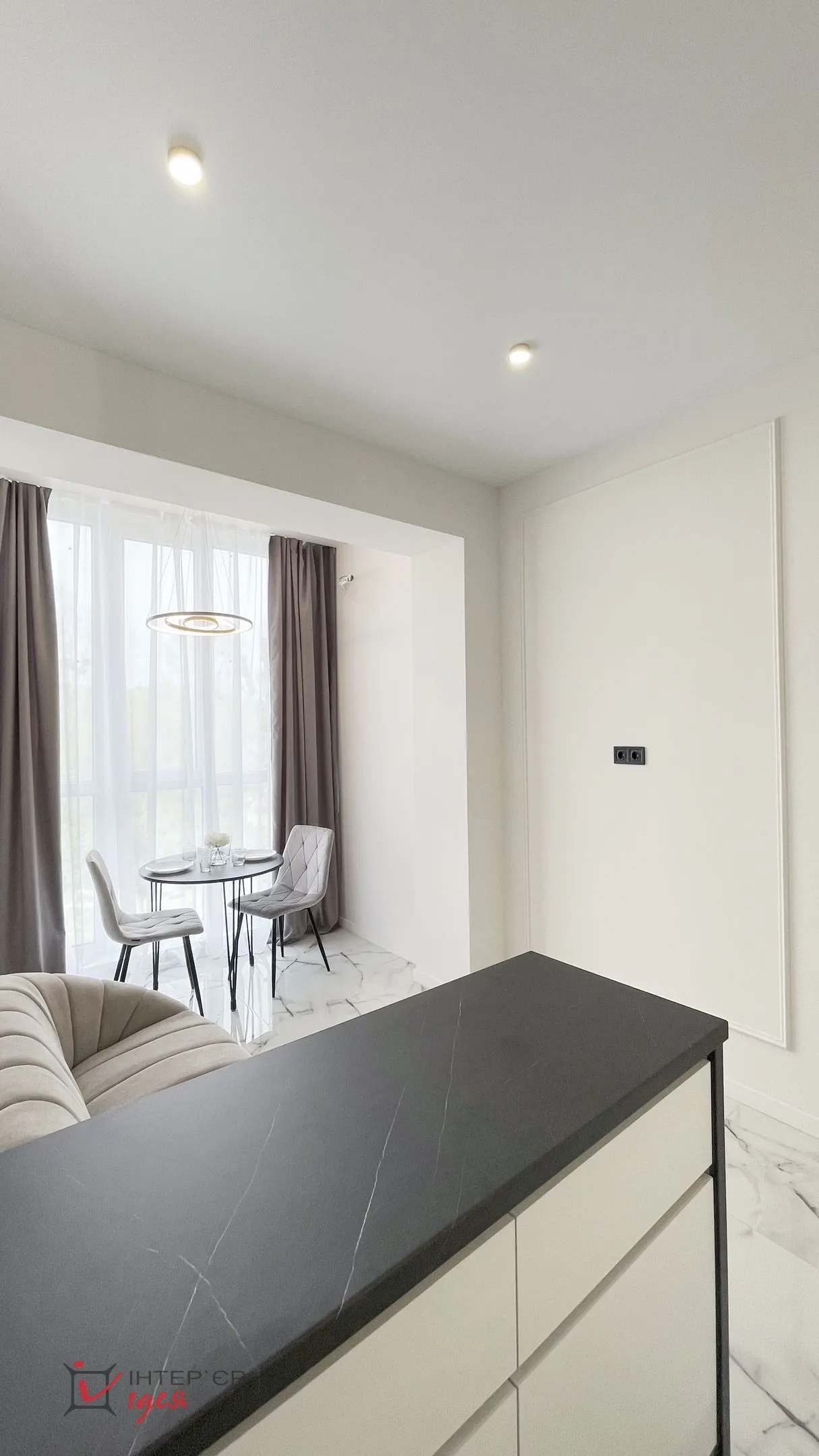 Квартира розташована на березі озера, і завдяки великим вікнам у ній завжди багато природного світла та красивий краєвид. Цей проєкт — приклад того, як навіть у компактному просторі можна створити відчуття гармонії, стилю та комфорту.